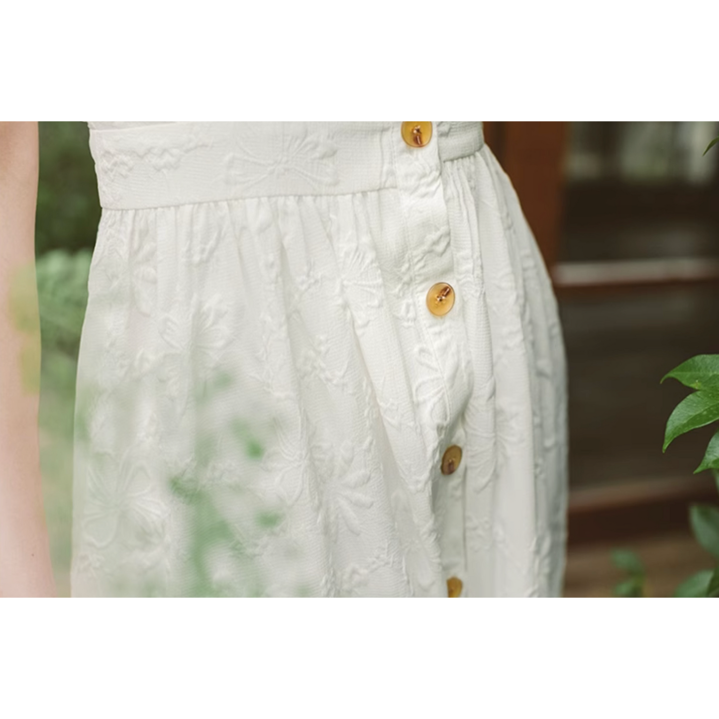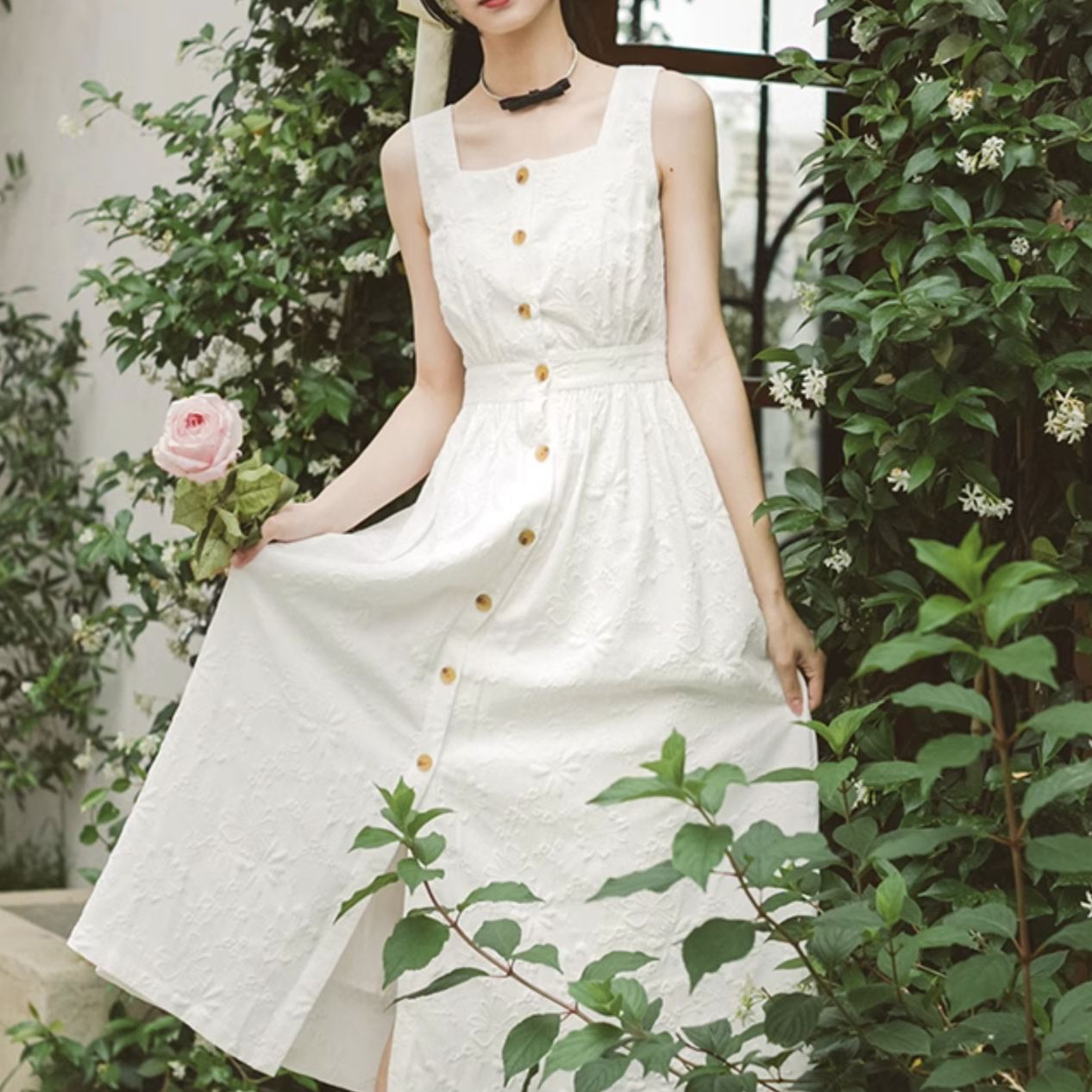 Pure white floral jacquard sleeveless dress