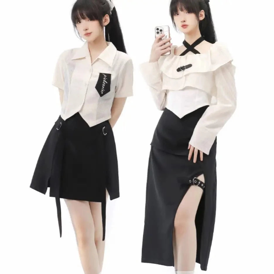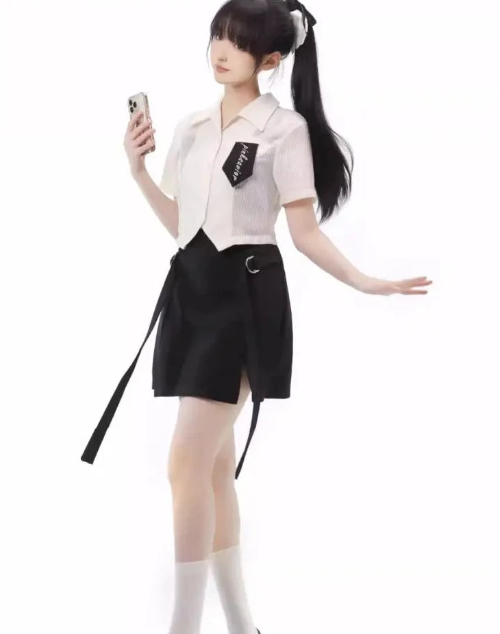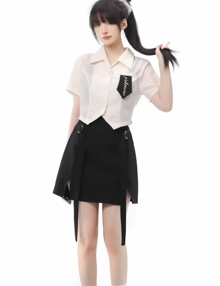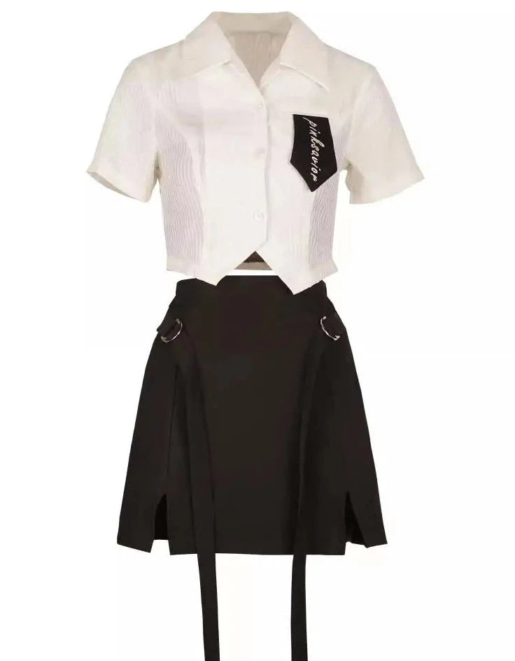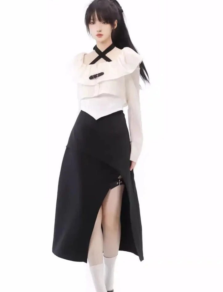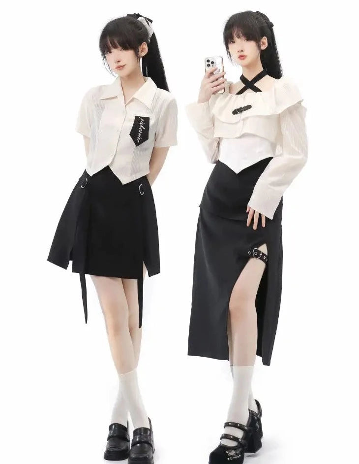 Monochrome girl's blouse and slit skirt