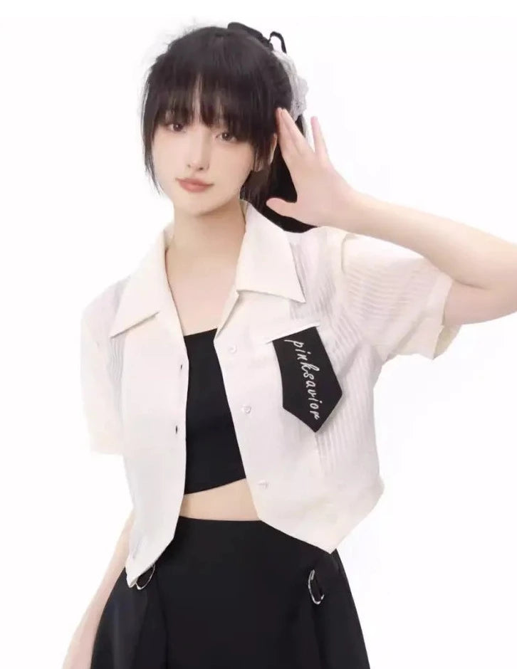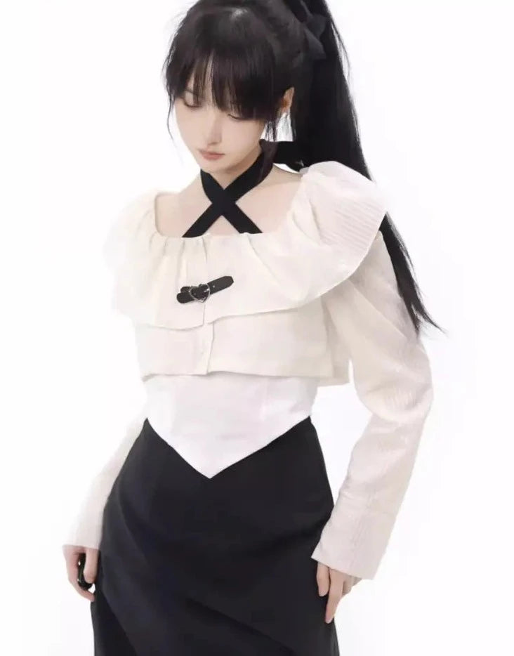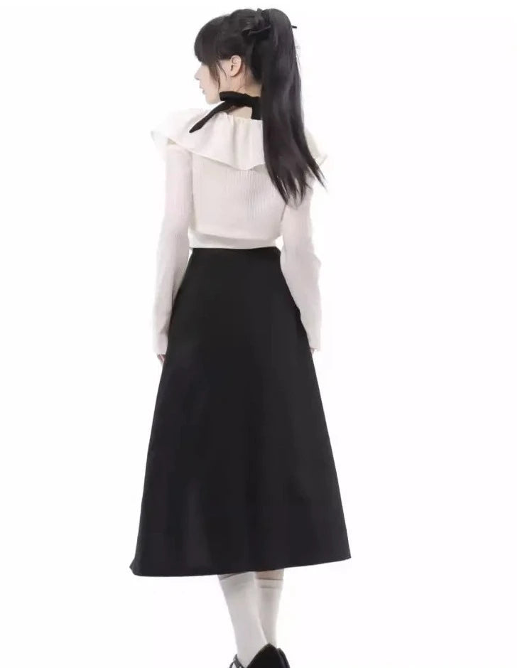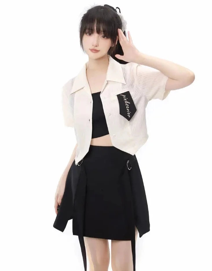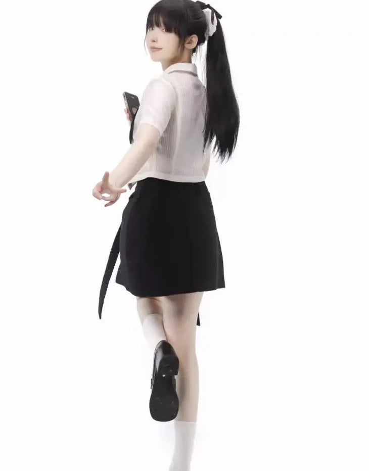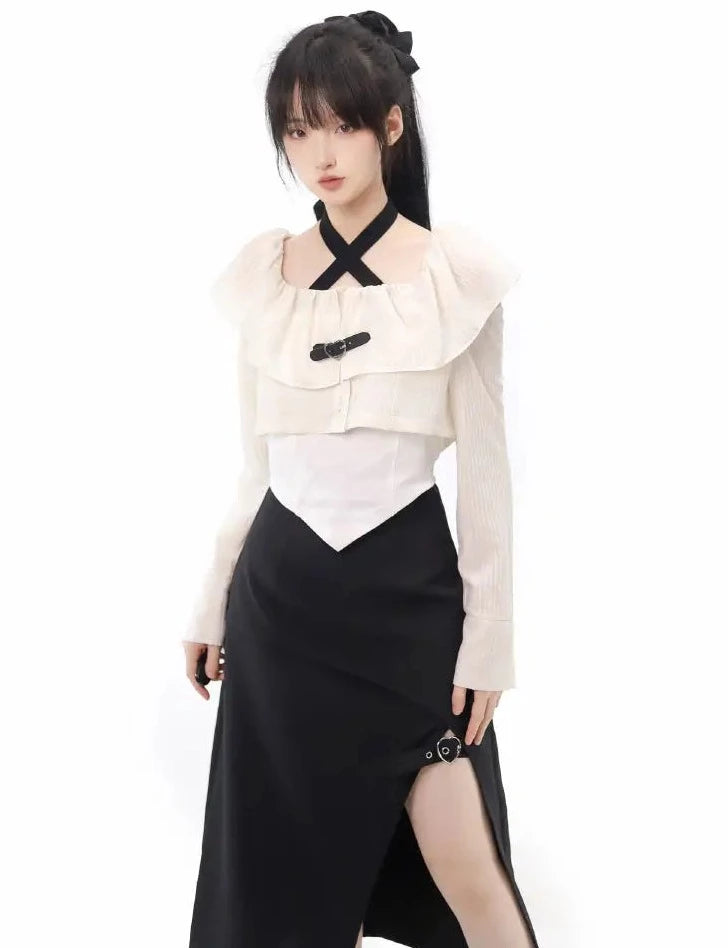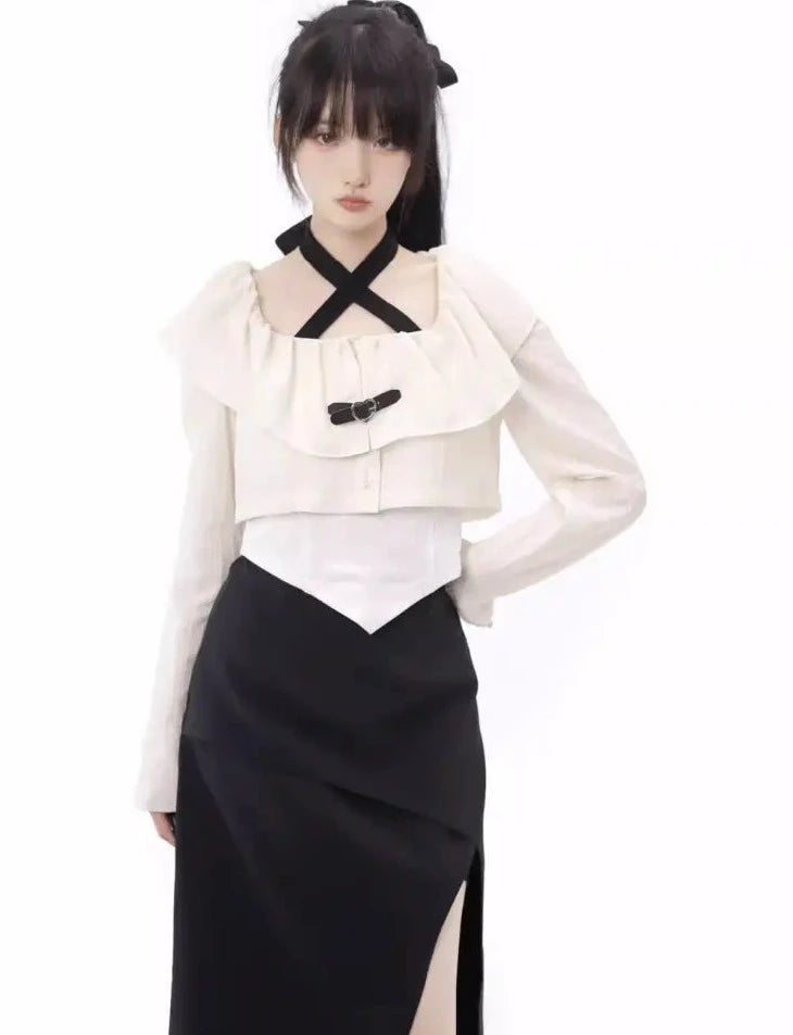 Monochrome girl's blouse and slit skirt