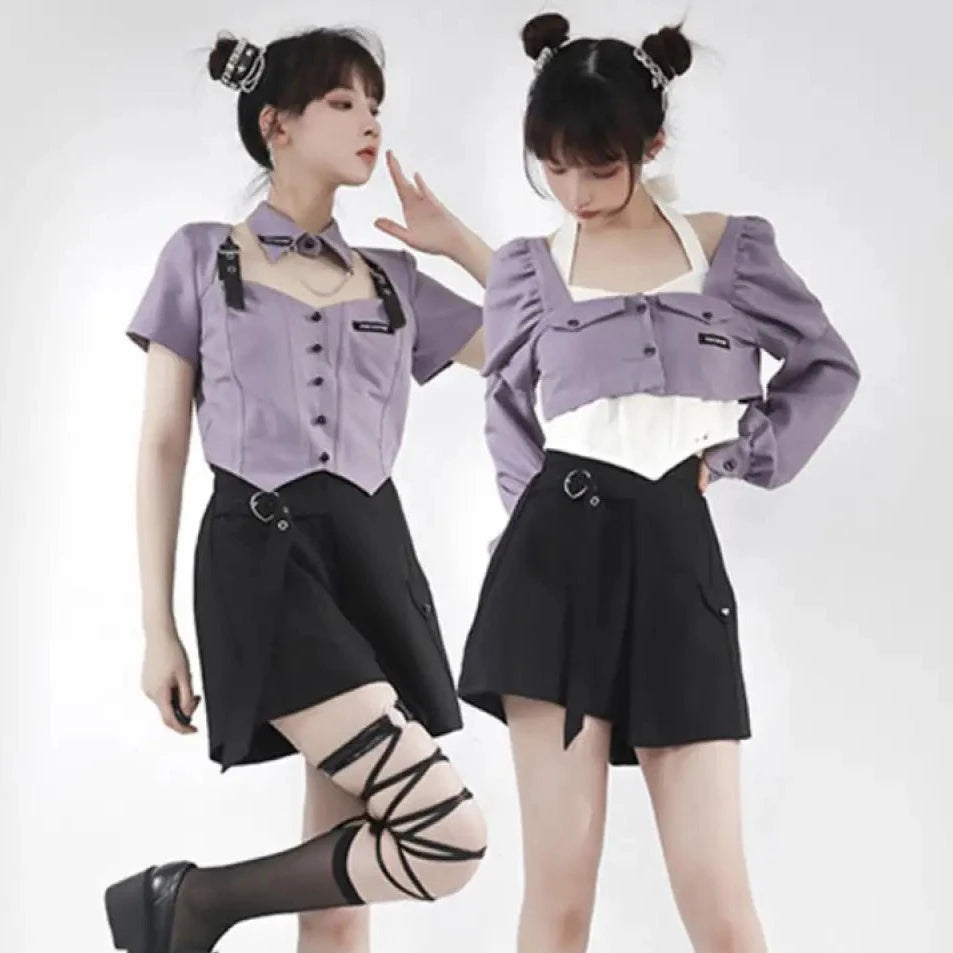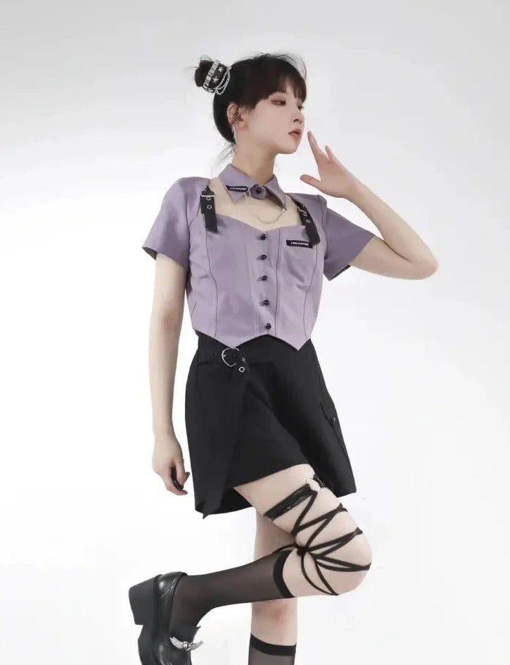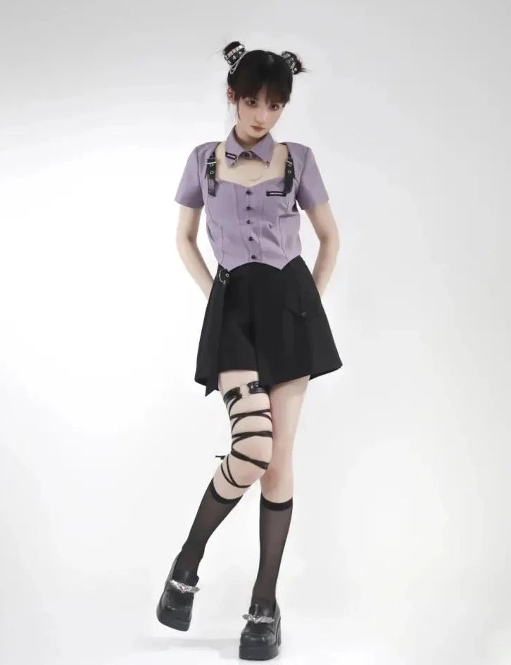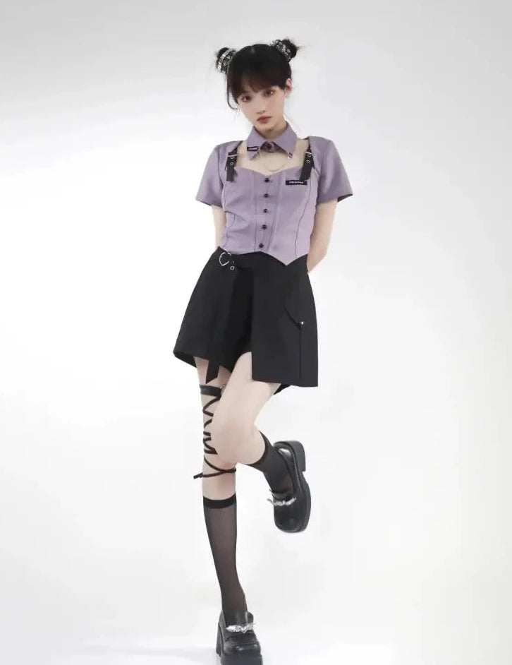 Pale purple and black girl top and bottom