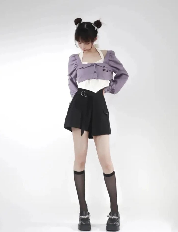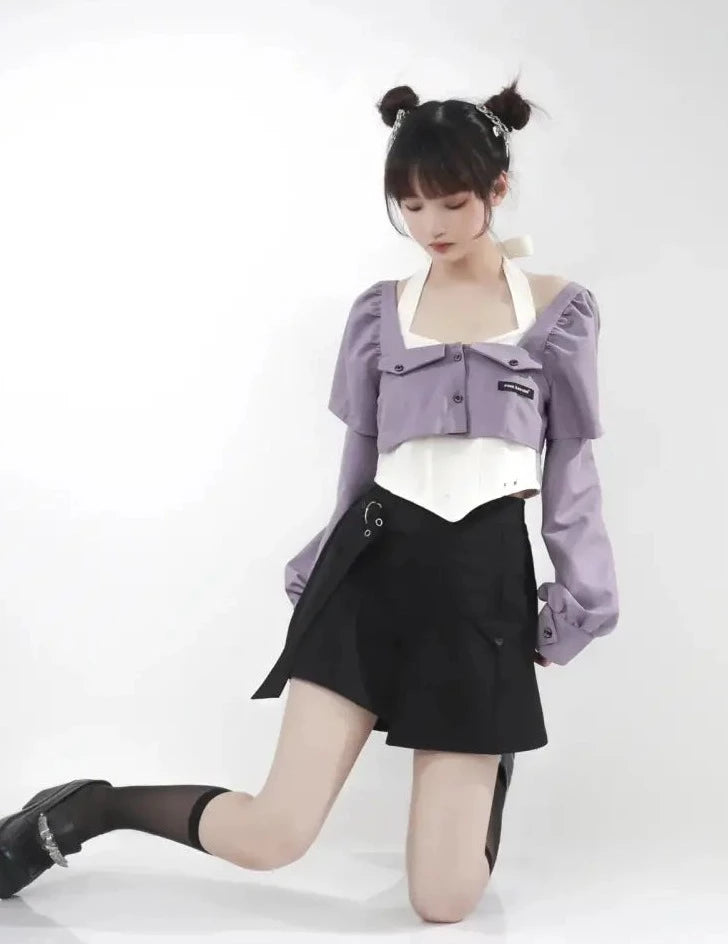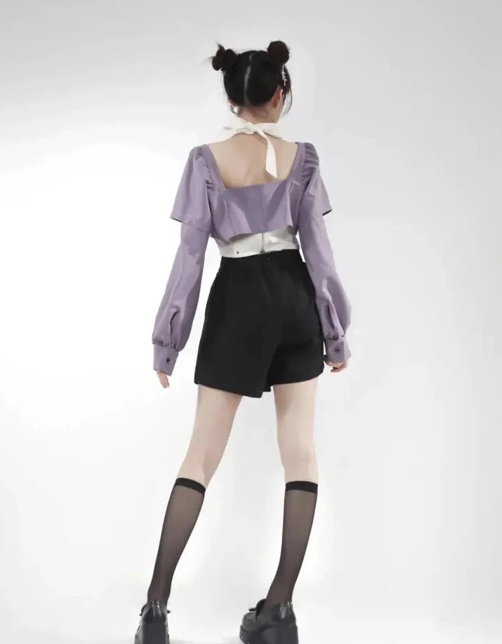 - ブラウス(長袖)(*パープルorホワイト)※袖の取り外しが可能