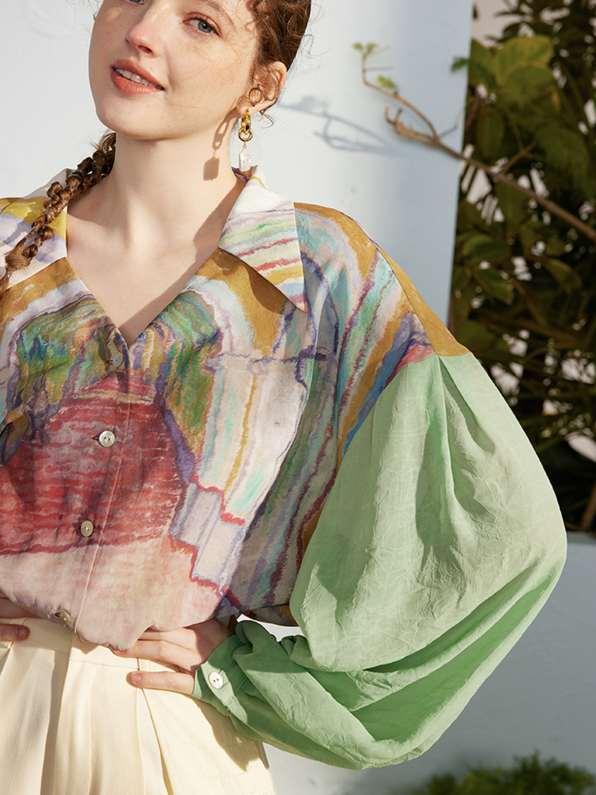 ゴッホの『サン=レミのサン=ポール病院の廊下』を描いたブラウス。