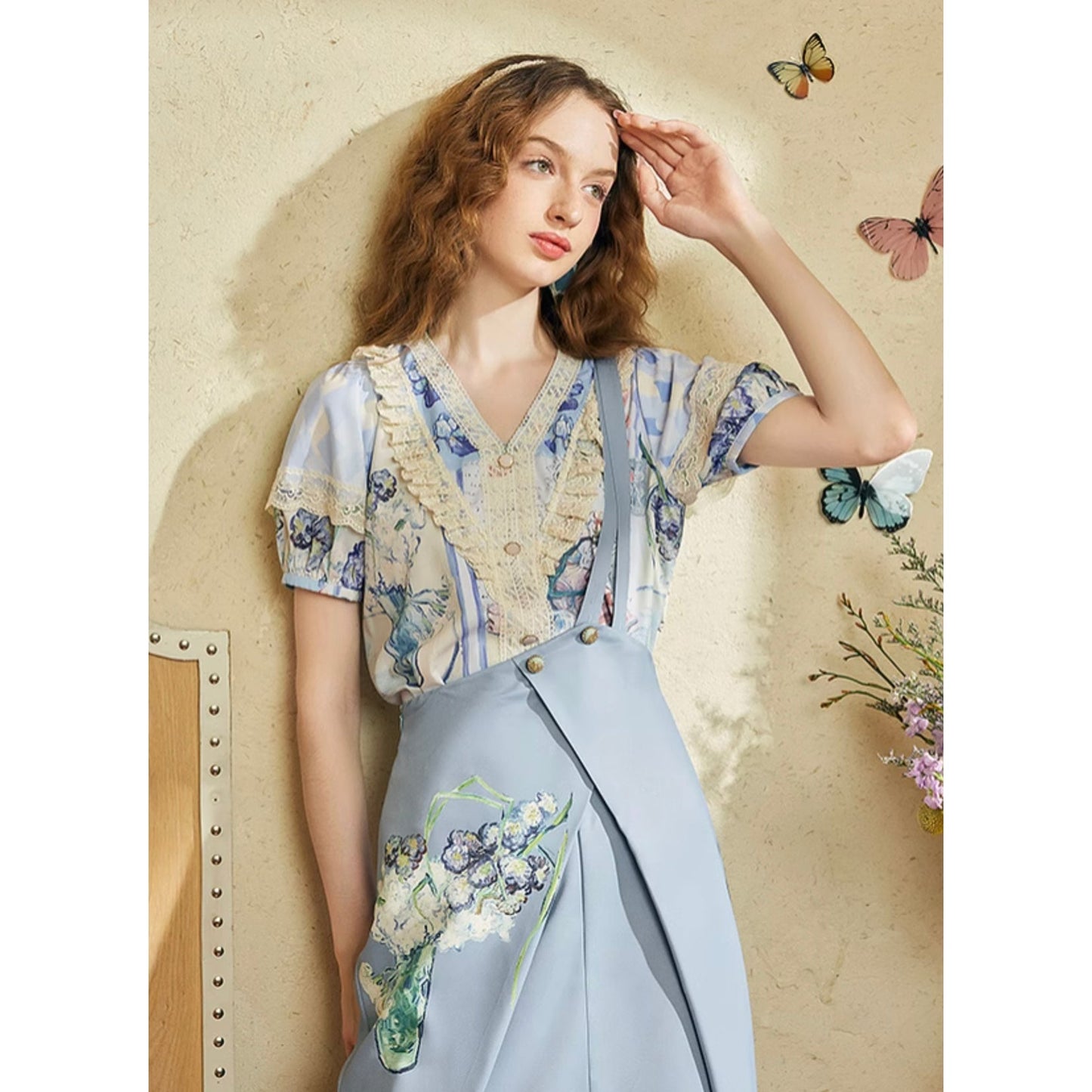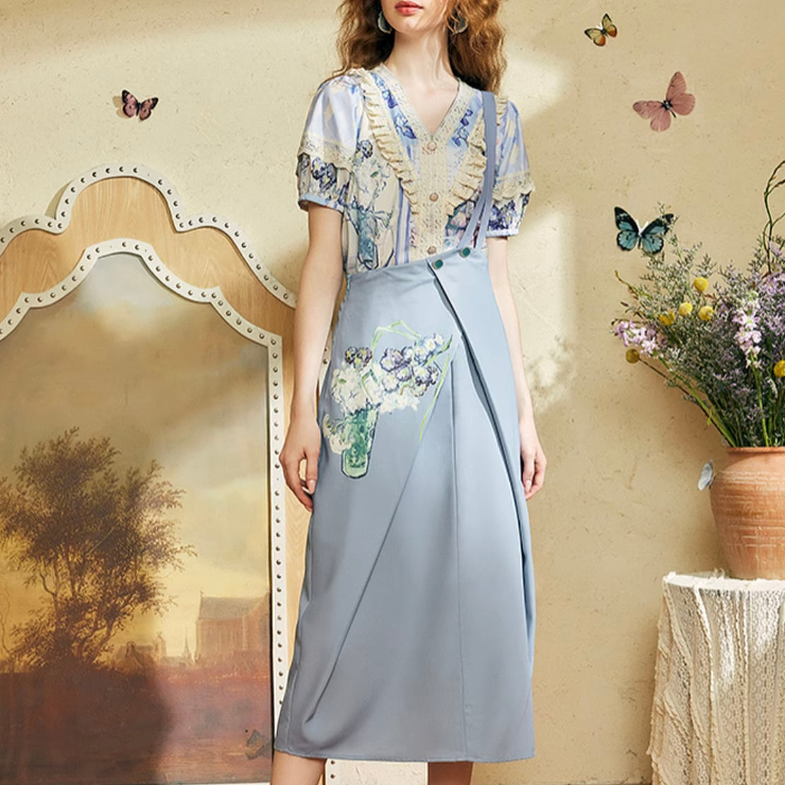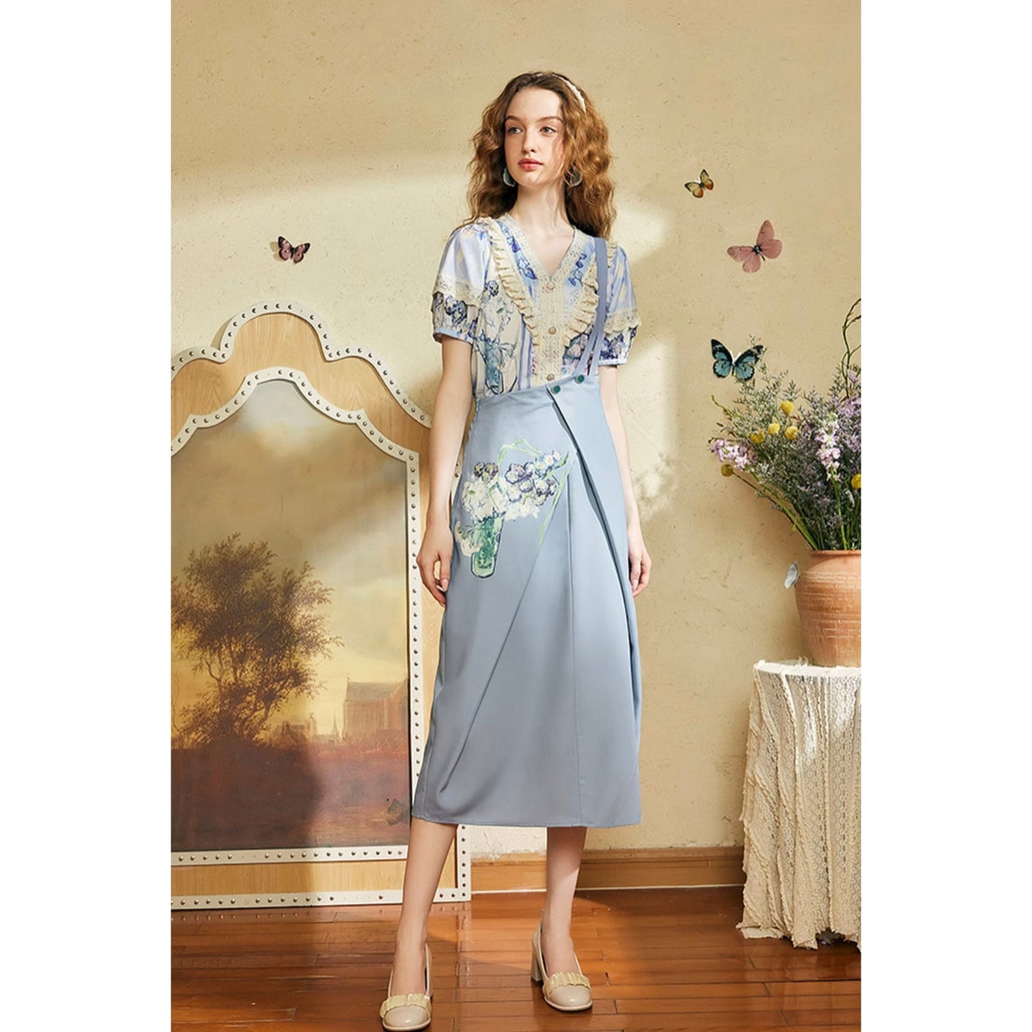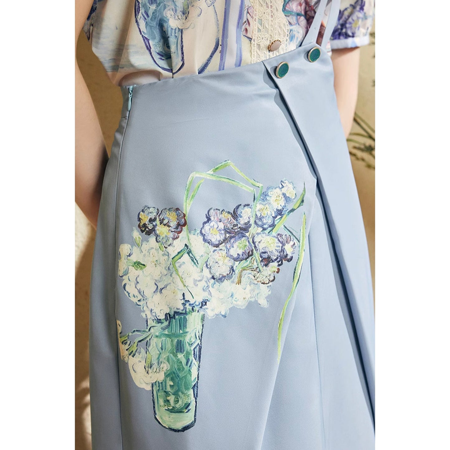 ゴッホの『静物:アイリスのある花瓶』を描いたストラップスカート。