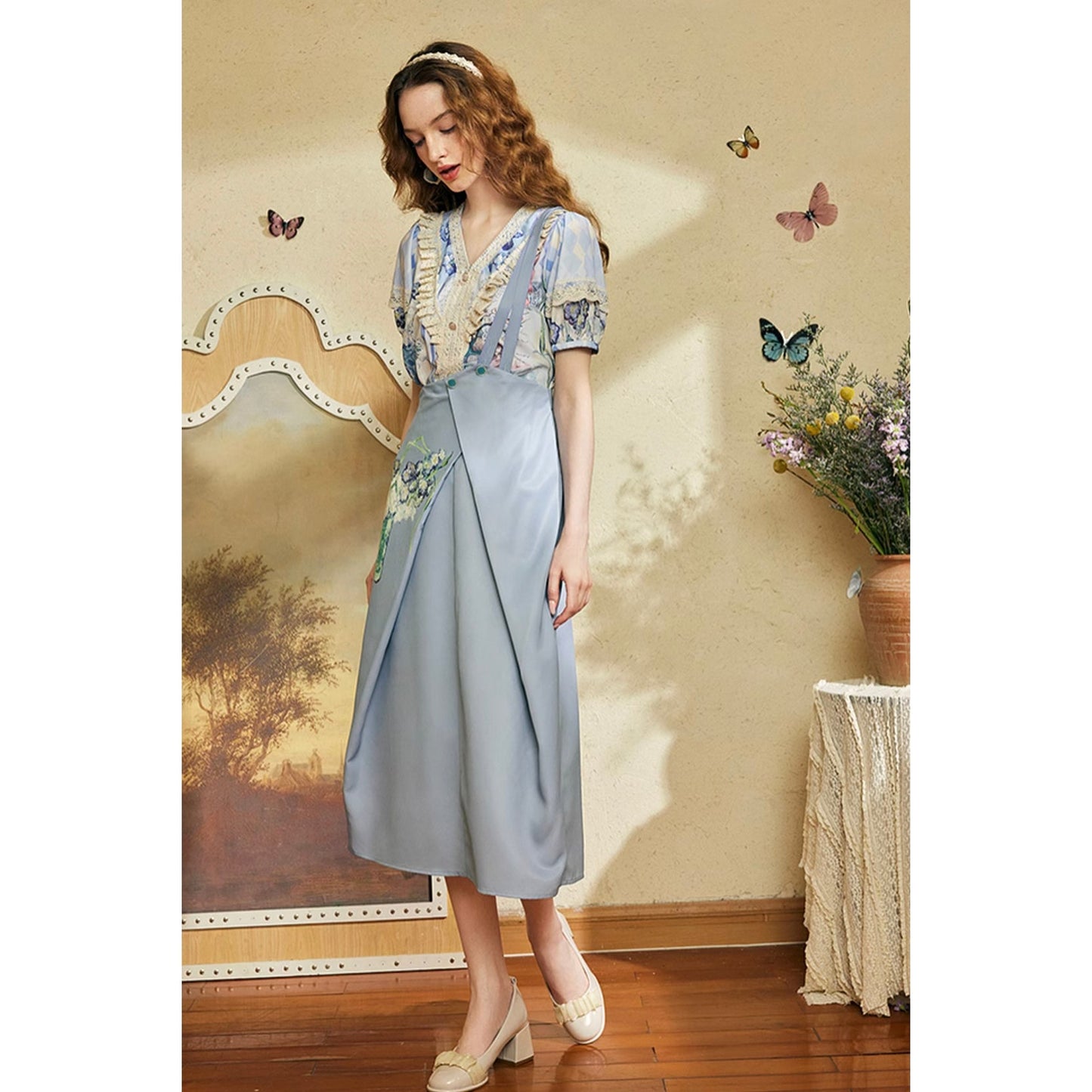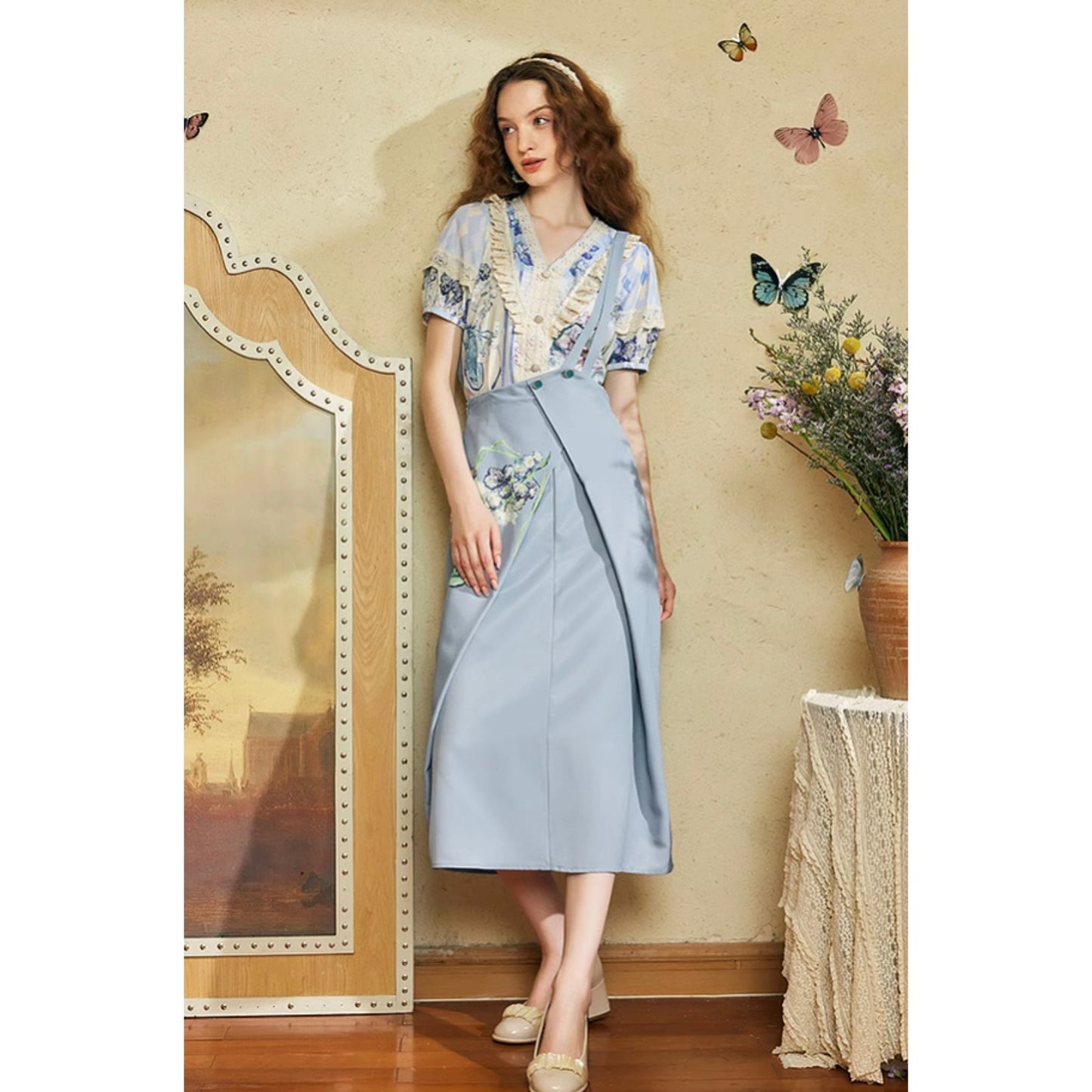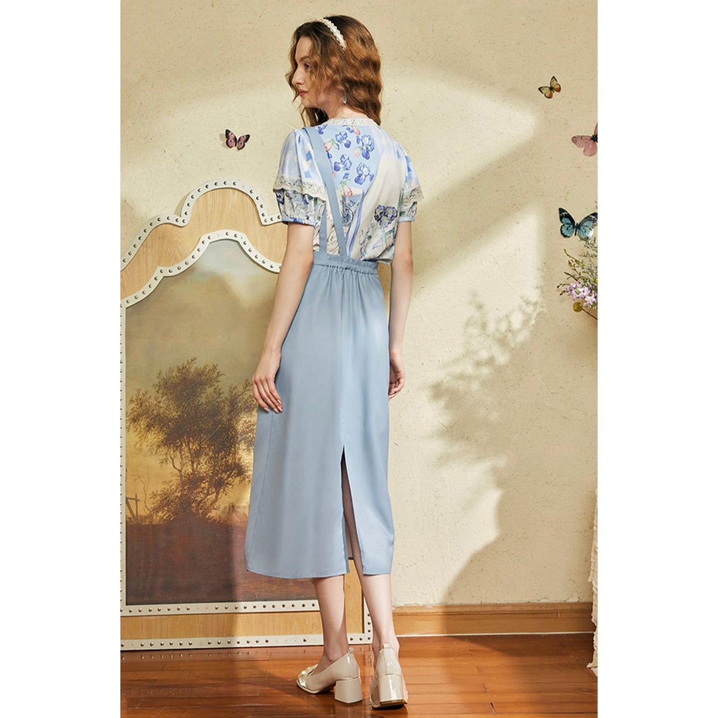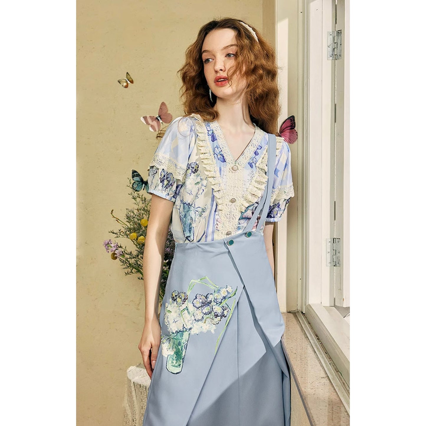 ゴッホの『静物:アイリスのある花瓶』を描いたストラップスカート。
