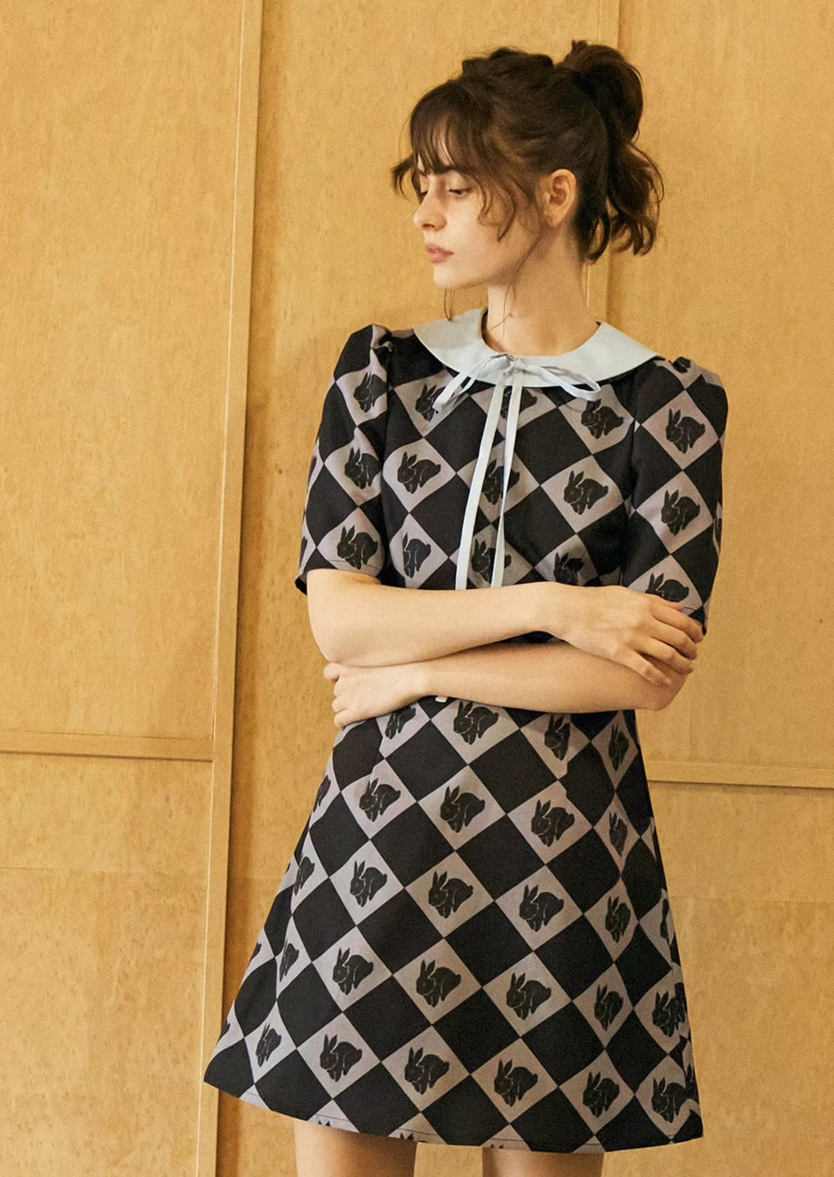 New Rabbit Silhouette Lapel Dress